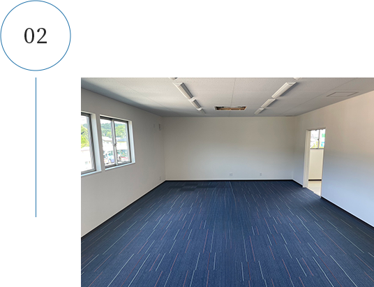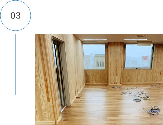 主に床面積の広い建物での工事を多く担当し、過去には学校・保育園・老人ホームなどの床を施工。新築工事以外に床リフォーム、オフィスや店舗の床工事も承ります。